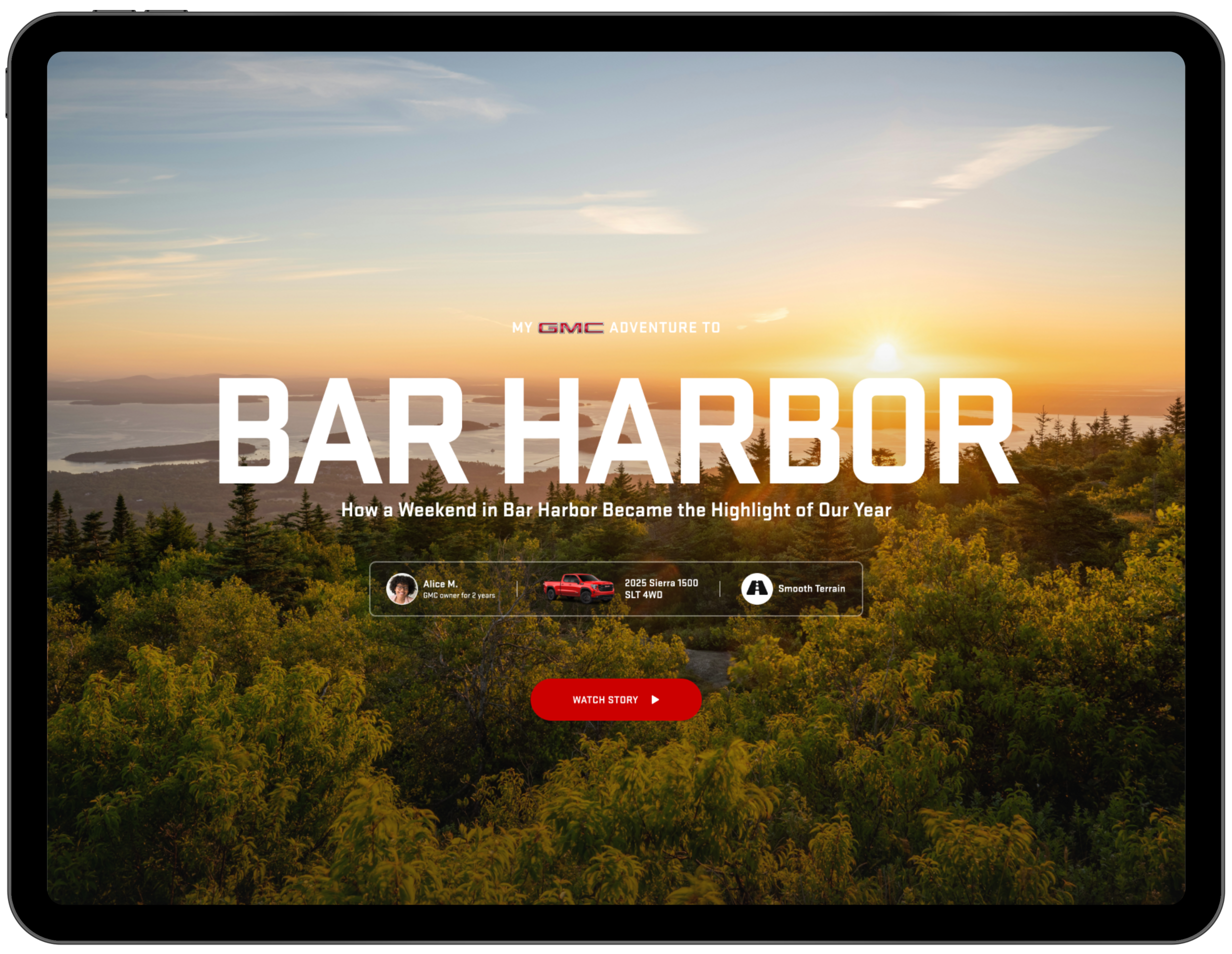 A concept feature within GMC’s AI-driven website redesign focused on strengthening brand loyalty through curated owner stories and AI-powered trip exploration. Designed to support both pre- and post-purchase engagement.