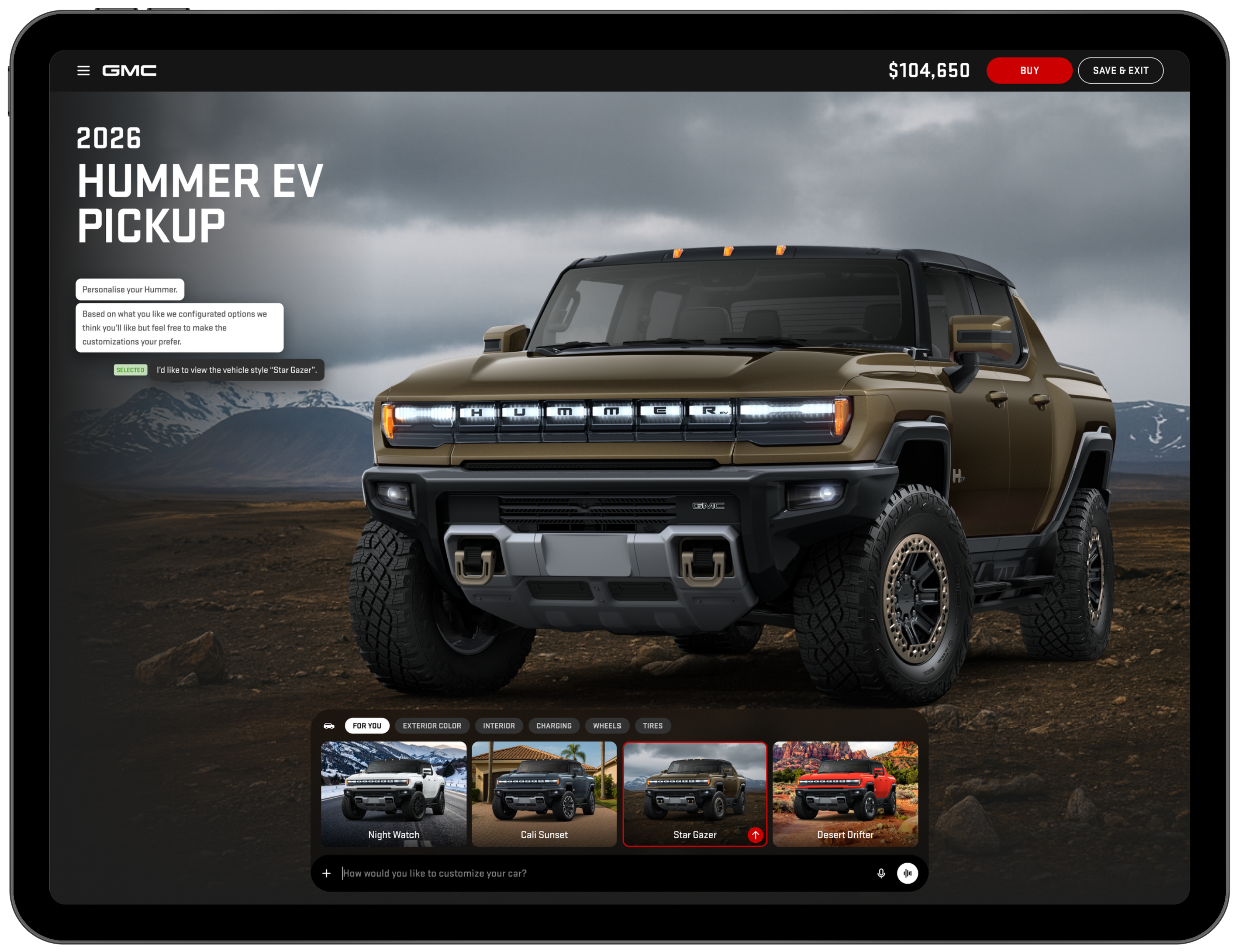 A reimagined vehicle customization and purchase flow designed for an agentic, AI-integrated web. Transformed a traditional configurator into a guided, conversational buying experience.