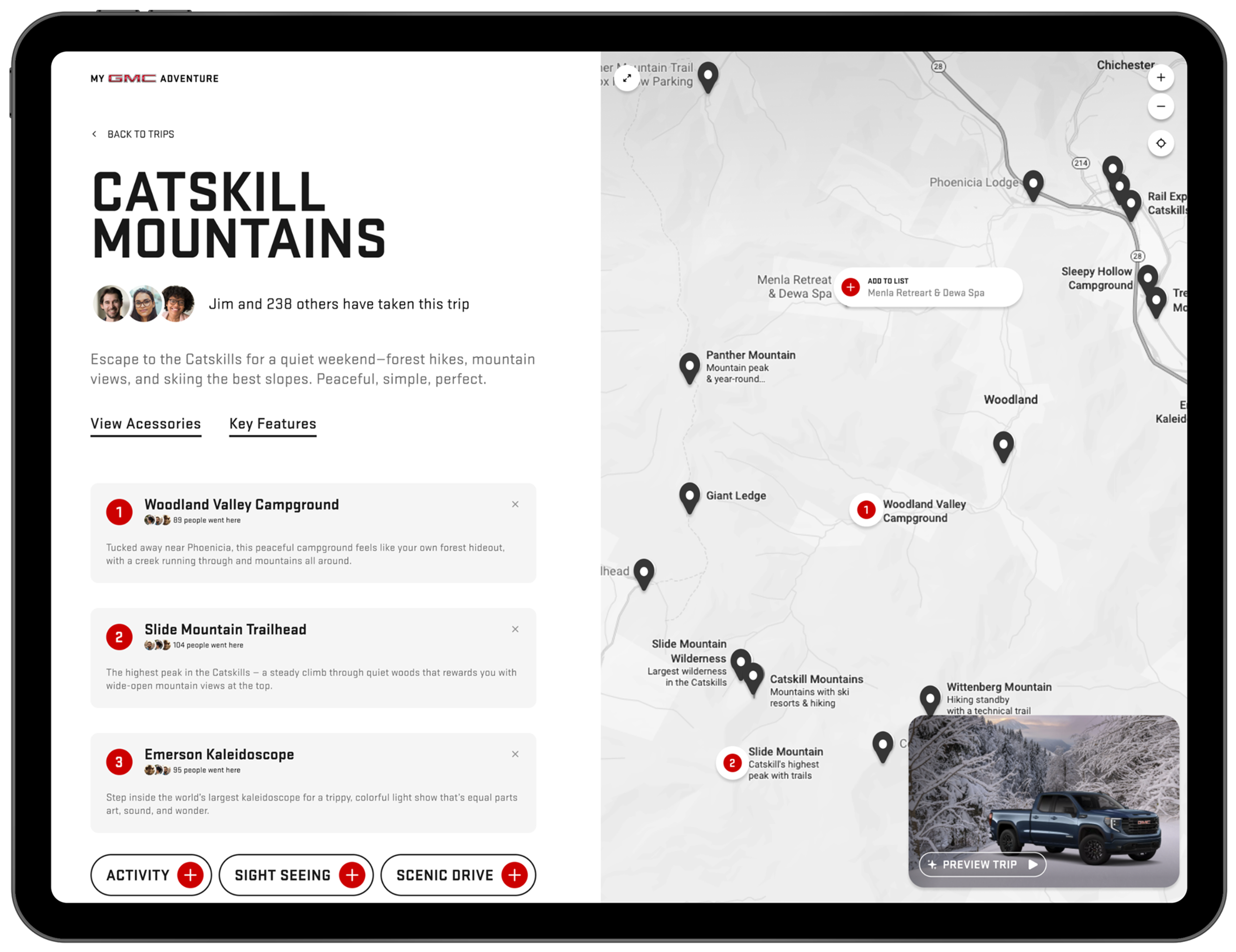 A concept feature within GMC’s AI-driven website redesign focused on strengthening brand loyalty through curated owner stories and AI-powered trip exploration. Designed to support both pre- and post-purchase engagement.