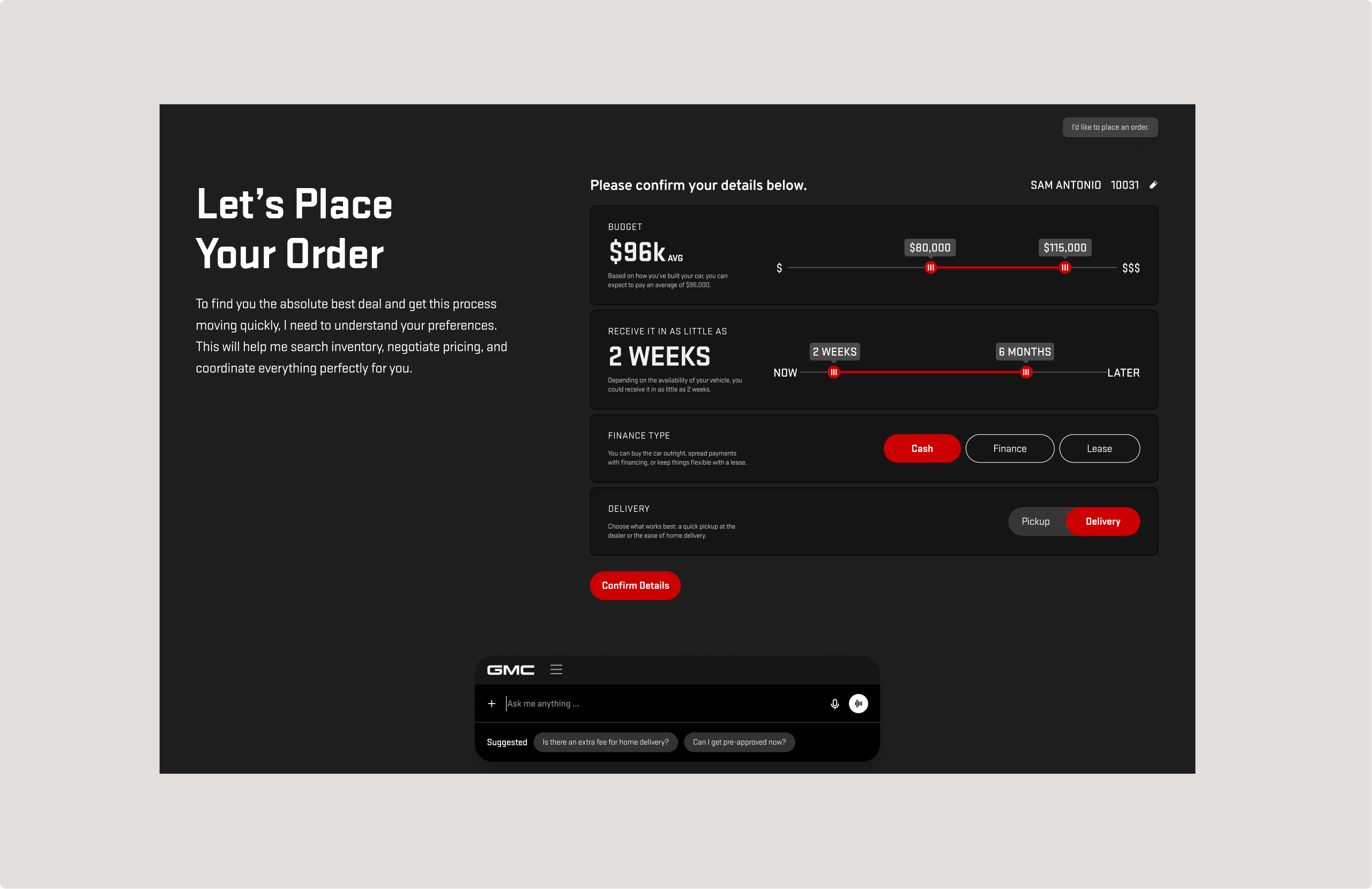 We reimagined the vehicle builder as a conversational, AI-assisted experience.
